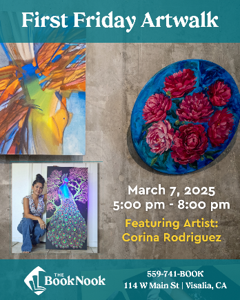 Join us Friday, March 7th, for the First Friday Art Walk, where we will showcase the incredible artwork of local artist Corina Rodriguez. Stroll through our bookstore, enjoy stunning art, and find your next great read.
