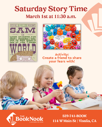 Join us on Saturday, March 1st, for a fun and comforting Storytime as we read “Sam the Most Scaredy-Cat Kid in the World” by Mo Willems. After the story, we will create and craft a special friend with whom you can share all your fears.