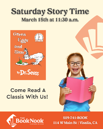 Join us on Saturday, March 15th, for a classic story time featuring “Green Eggs and Ham.” Perfect for kids and grown-ups alike who love a good story!